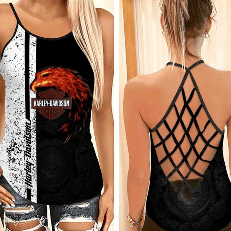 Harley Davidson CRISS CROSS OPEN BACK CAMISOLE TANK TOP DESIGN 3D SIZE S – 5XL -NABF102