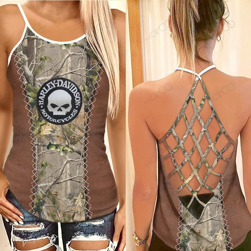 Harley Davidson CRISS CROSS OPEN BACK CAMISOLE TANK TOP DESIGN 3D SIZE S – 5XL -NASA112