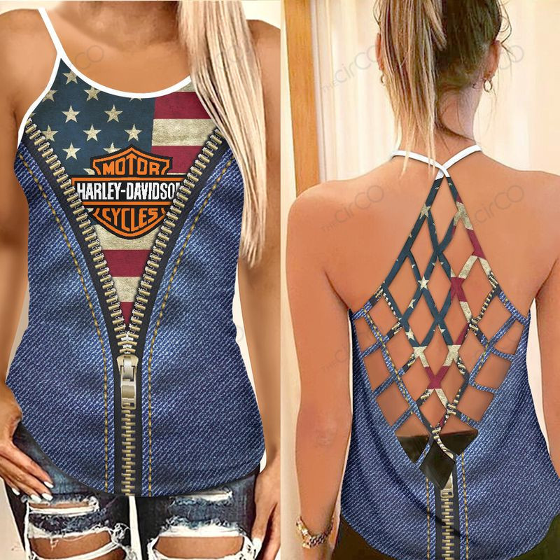 Harley Davidson CRISS CROSS OPEN BACK CAMISOLE TANK TOP DESIGN 3D SIZE S – 5XL -NASA113