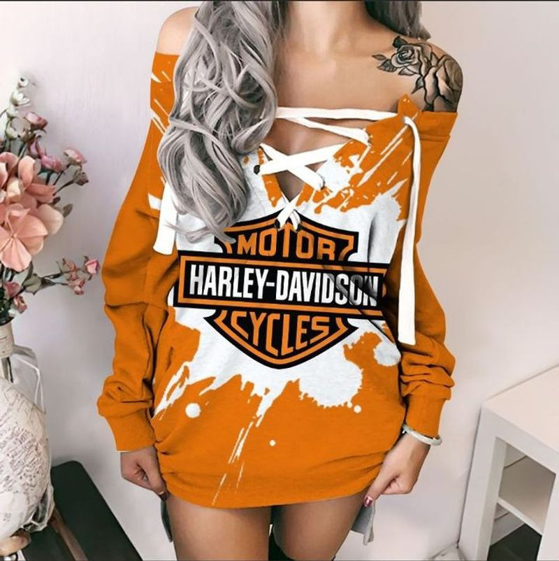 Harley Davidson Criss Cross Sweatshirt Dress Sizes S – 3XL NASA329