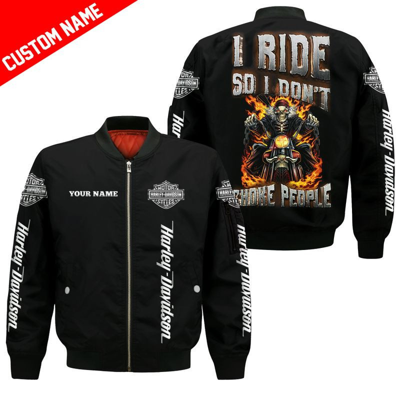 Harley Davidson Custom Name Bomber Jacket Design 3D Full Printed NMHN095F