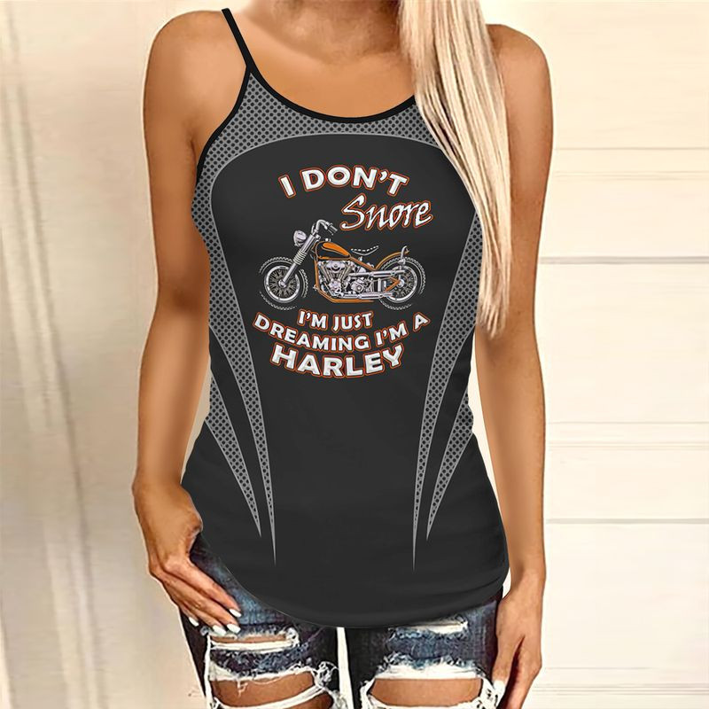 Harley Davidson I’m Just Dreaming I’m A Harley CRISS CROSS OPEN BACK CAMISOLE TANK TOP DESIGN 3D SIZE S – 5XL -NABF31