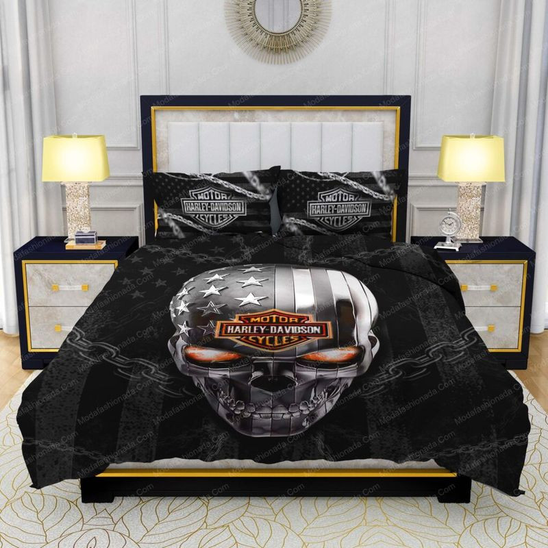 Harley Davidson Metallic Skull American Flag Bedding Set Cover Design 3D – NABL195