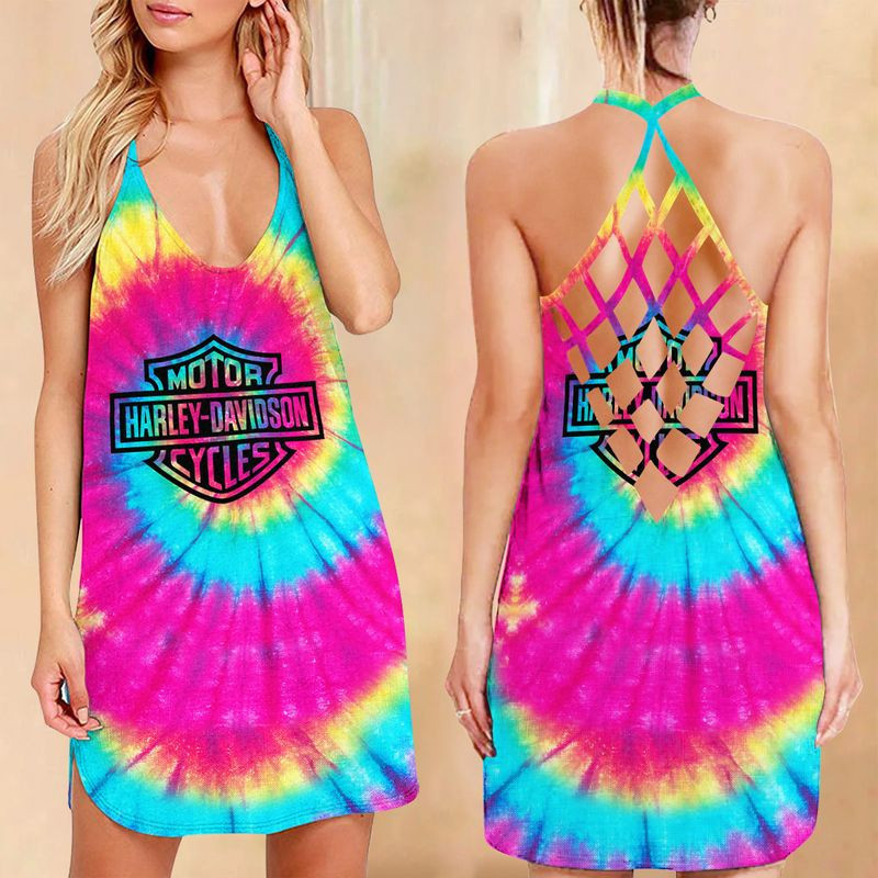 Harley Davidson Motorcycle Criss-Cross Open Back Dress NABB300