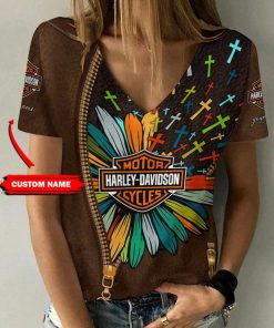 Harley Davidson Motorcycle Custom Name Women V-neck T-shirt NABK260