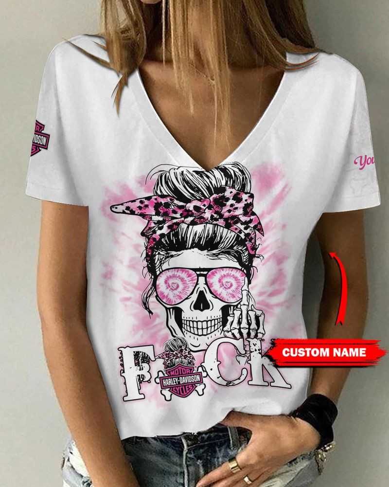 Harley Davidson Motorcycle Custom Name Women V-neck T-shirt NABK264