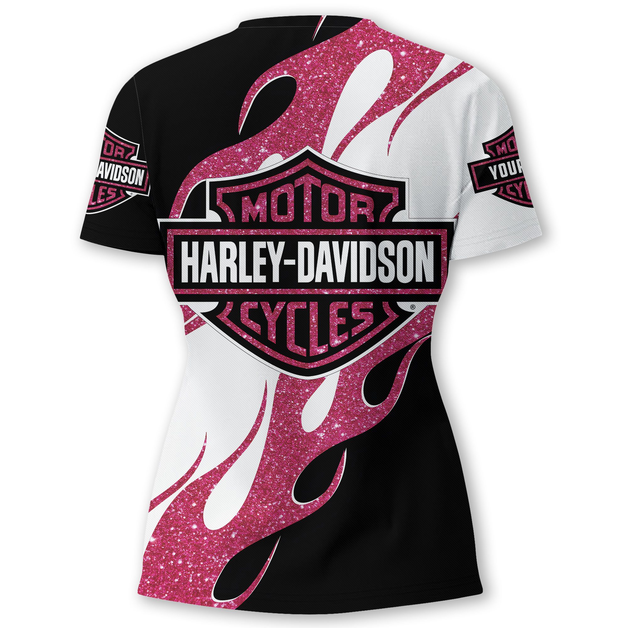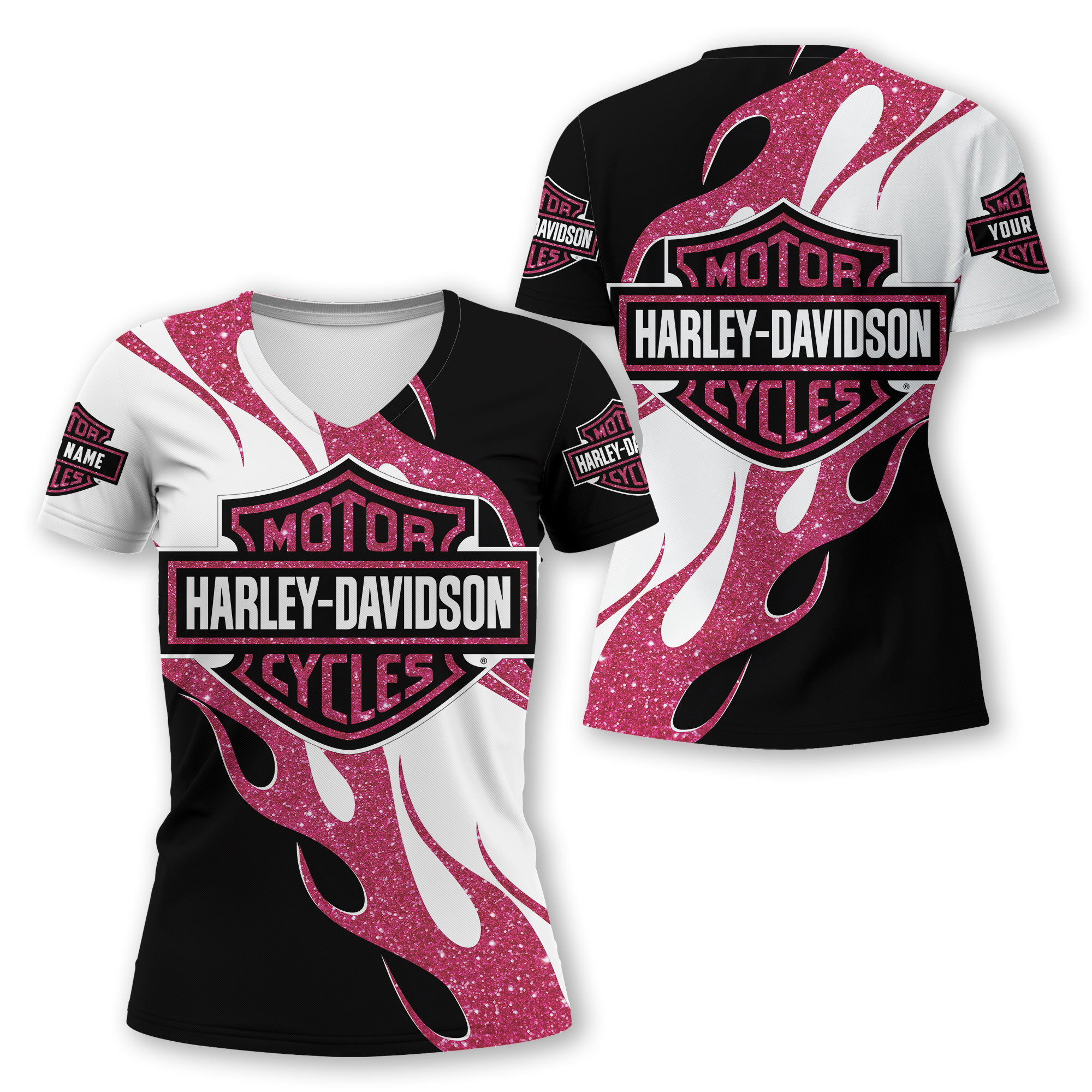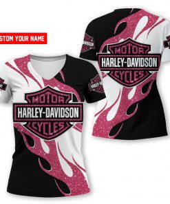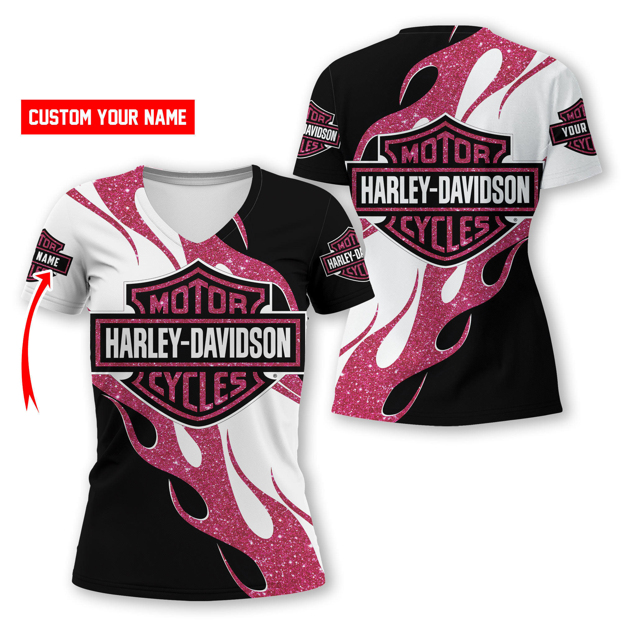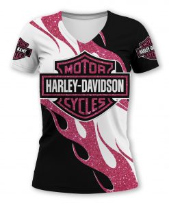Harley Davidson Motorcycle Custom Name Women V-neck T-shirt NABK265