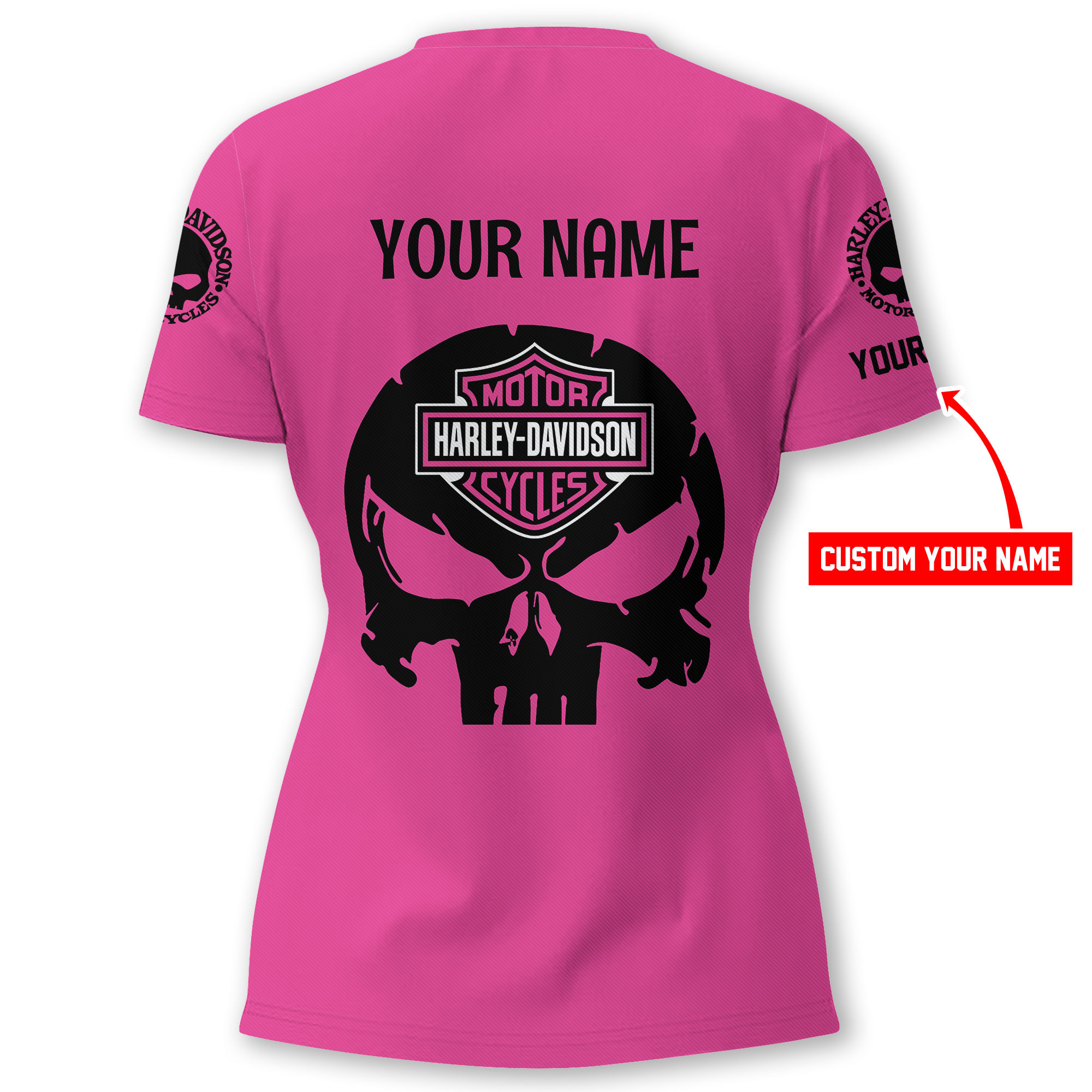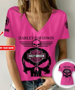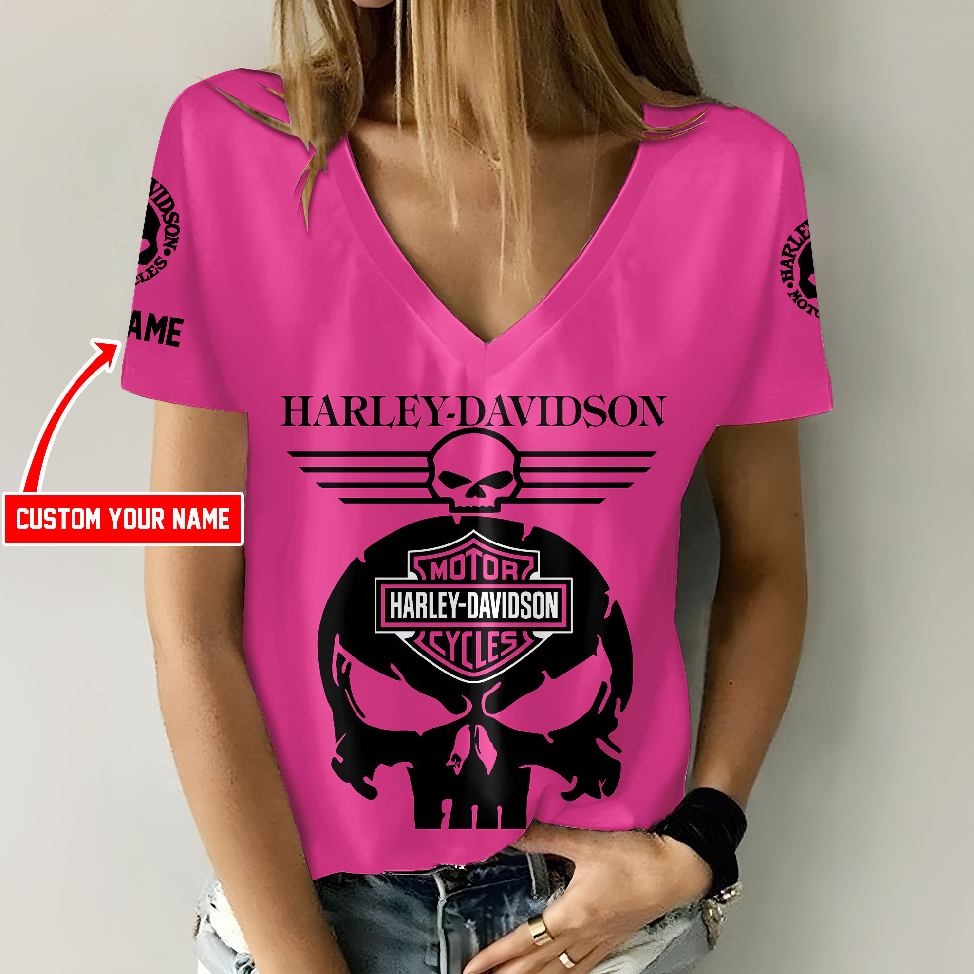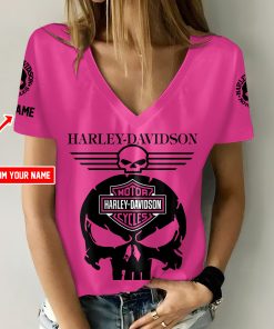 Harley Davidson Motorcycle Custom Name Women V-neck T-shirt NABK266