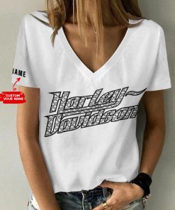 Harley Davidson Motorcycle Custom Name Women V-neck T-shirt NABK268