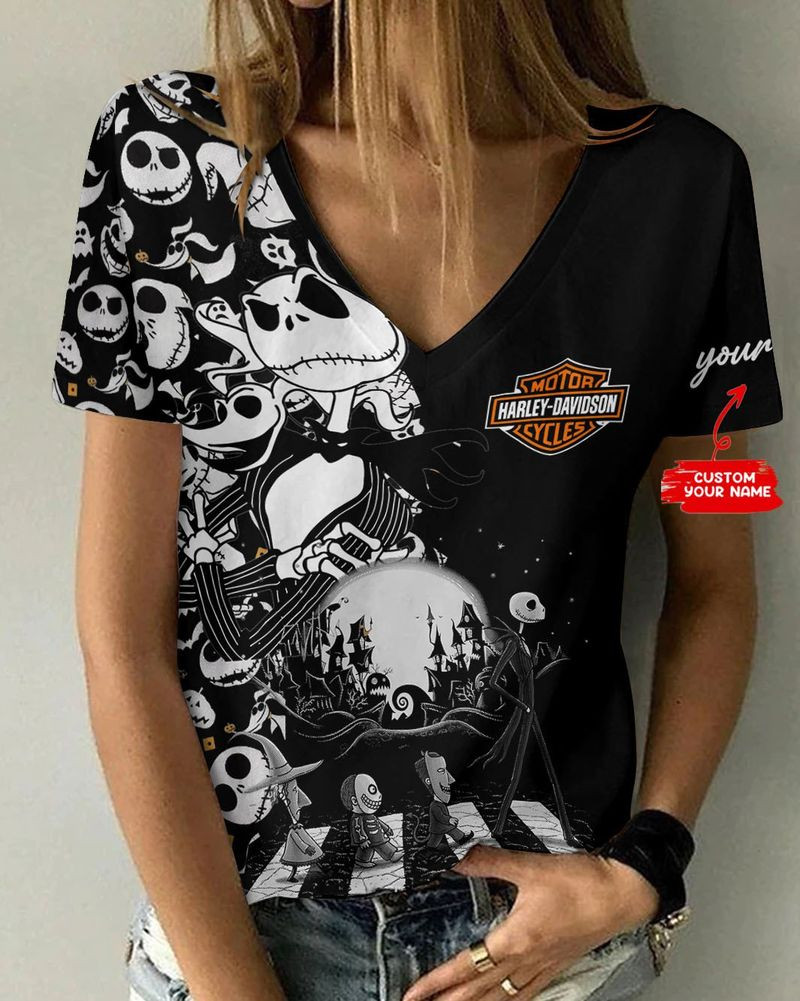 Harley Davidson Motorcycle Custom Name Women V-neck T-shirt NABS35