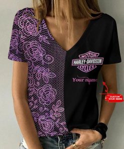 Harley Davidson Motorcycle Custom Name Women V-neck T-shirt NABS46