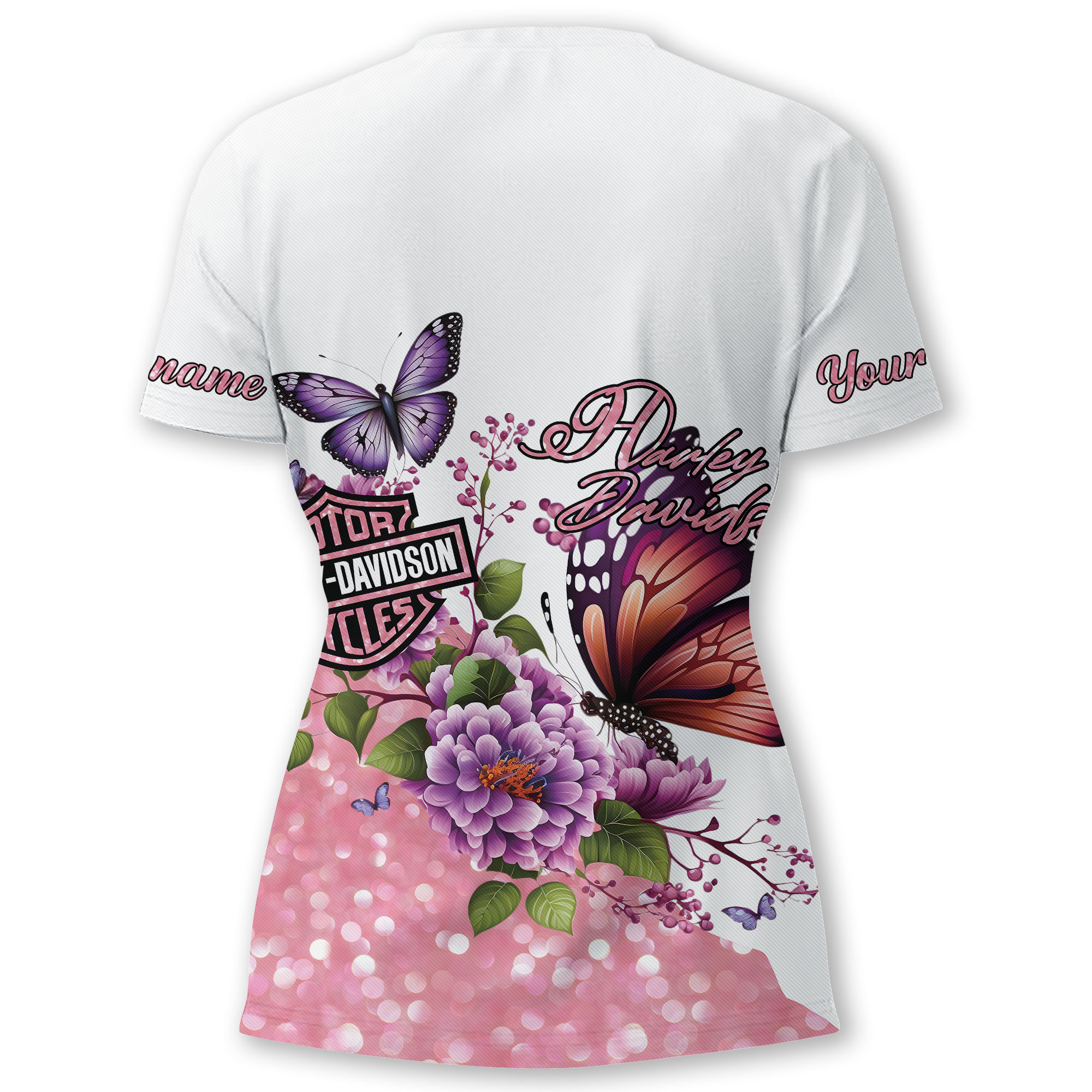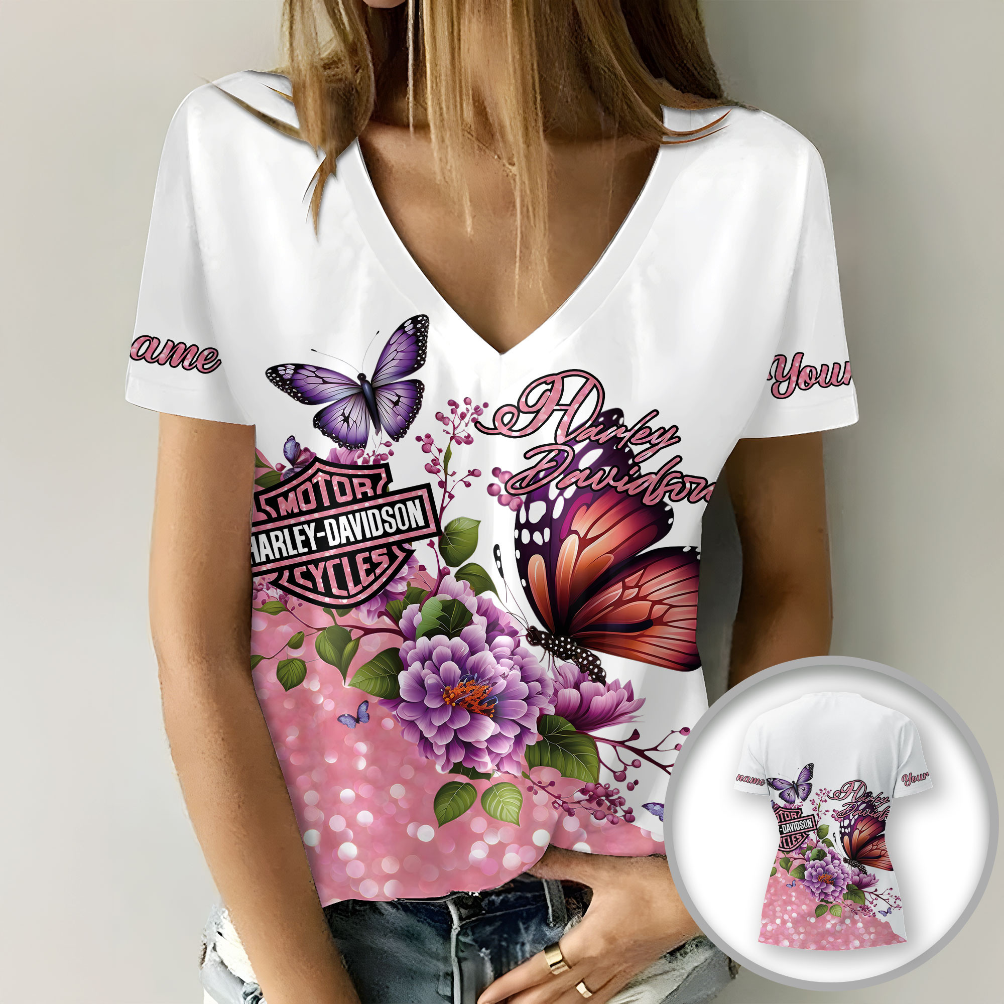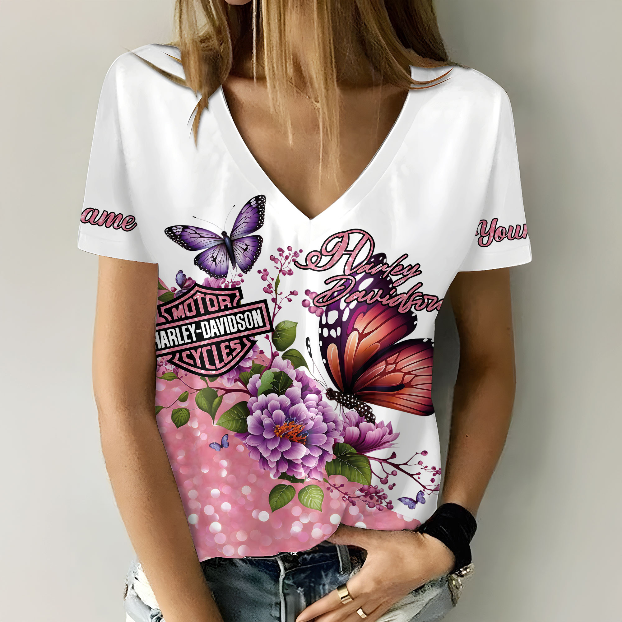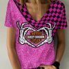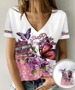 Harley Davidson Motorcycle Custom Name Women V-neck T-shirt NABS63