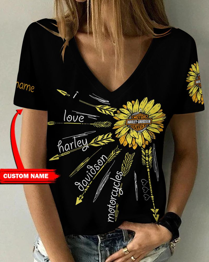 Harley Davidson Motorcycle Custom Name Women V-neck T-shirt NABS66