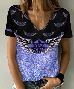 Harley Davidson Motorcycle Custom Name Women V-neck T-shirt NABS72