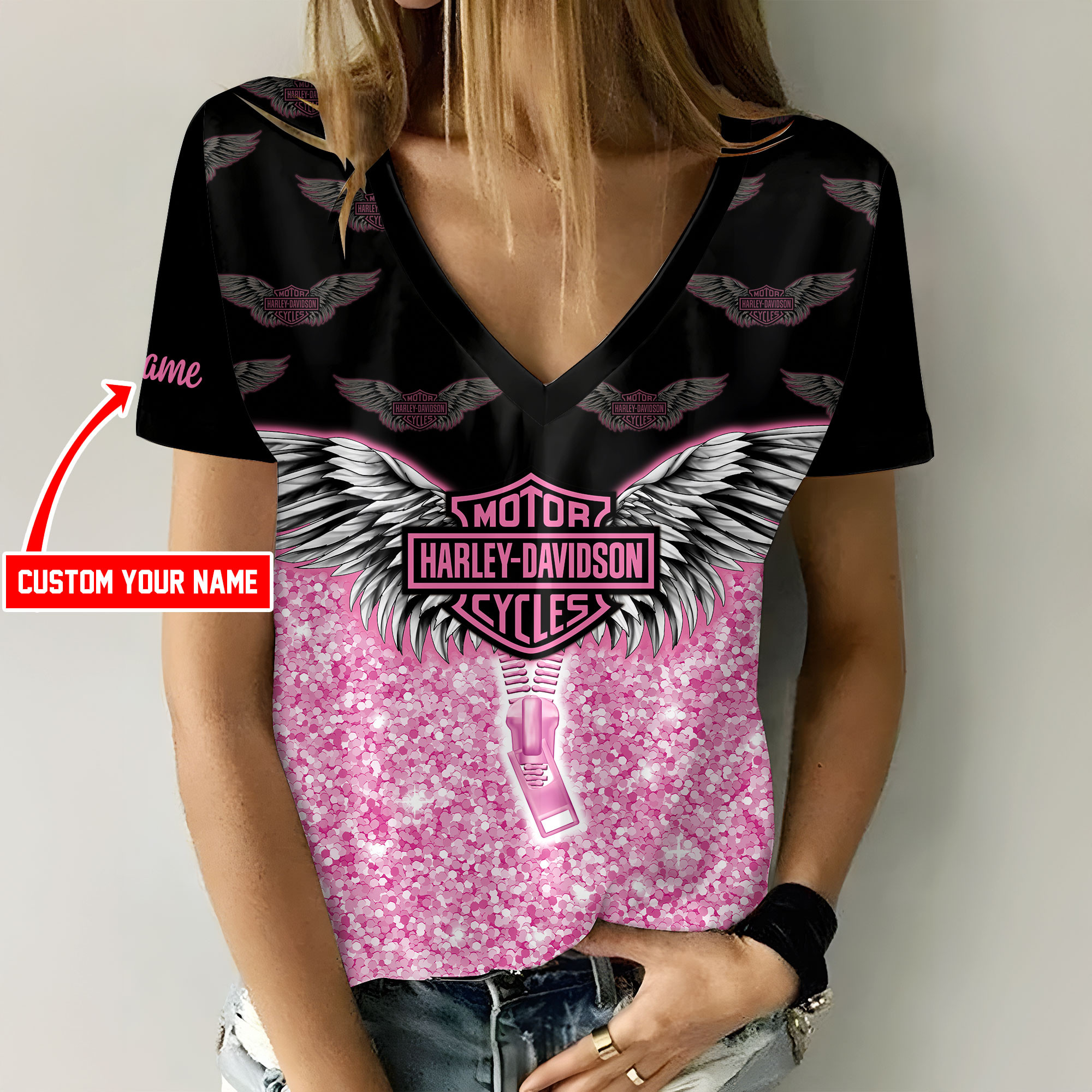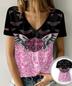 Harley Davidson Motorcycle Custom Name Women V-neck T-shirt NABS73