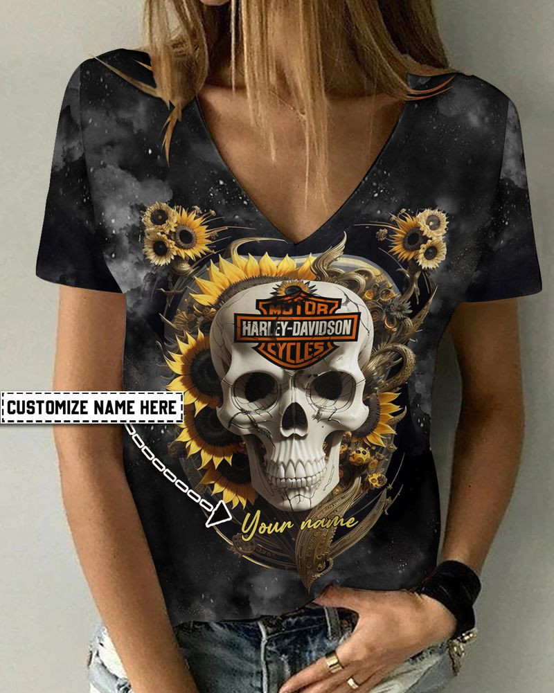 Harley Davidson Motorcycle Custom Name Women V-neck T-shirt NABS78