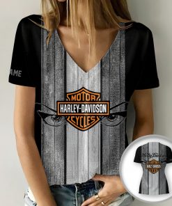 Harley Davidson Motorcycle Custom Name Women V-neck T-shirt NABS82