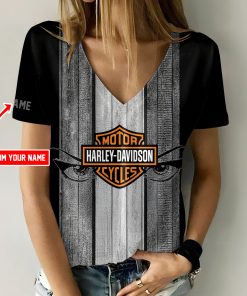 Harley Davidson Motorcycle Custom Name Women V-neck T-shirt NABS82