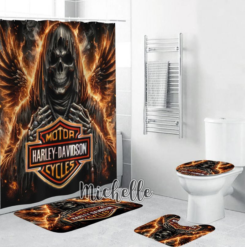 Harley Davidson Motorcycle Skull Bathroom Decor Set NABU269