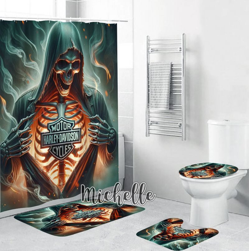 Harley Davidson Motorcycle Skull Bathroom Decor Set NABU270