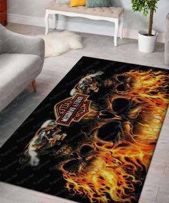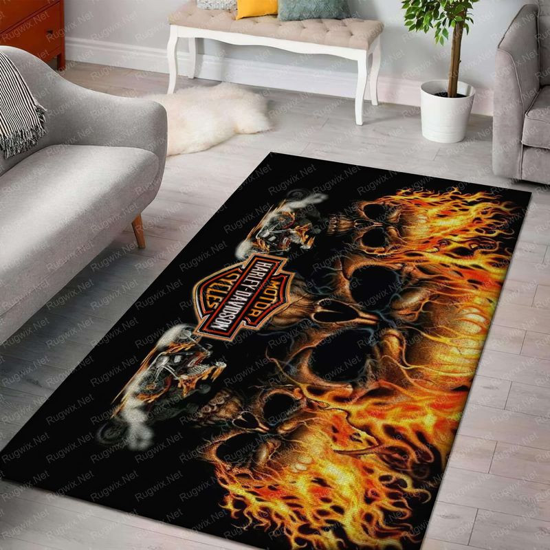 Harley Davidson Motorcycle Skulls Fire Rug Home Floor Decor NABH140A