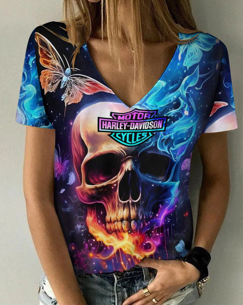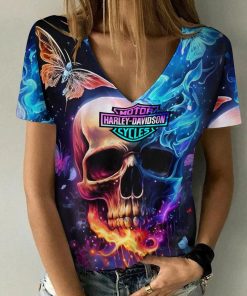 Harley Davidson Motorcycle Women V-neck T-shirt NABD126