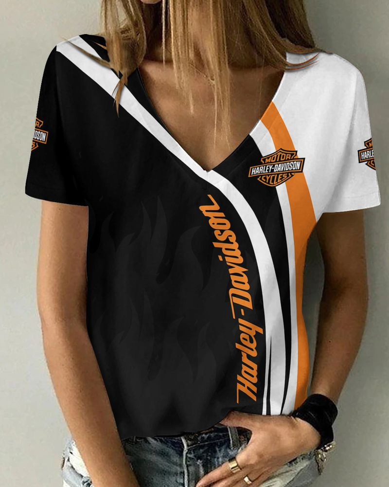 Harley Davidson Motorcycle Women V-neck T-shirt NABD130