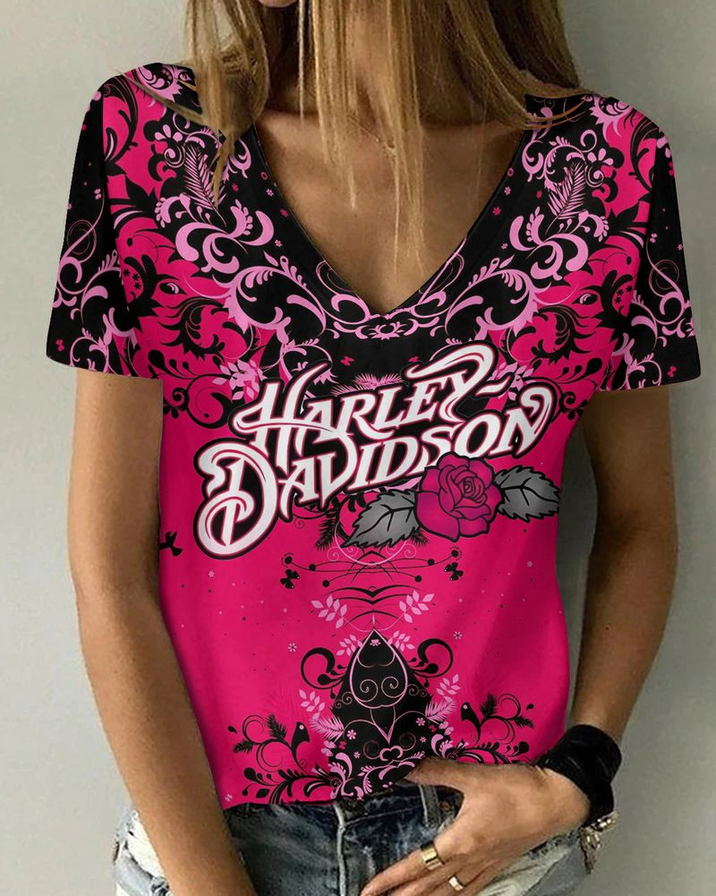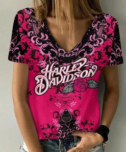 Harley Davidson Motorcycle Women V-neck T-shirt NABD144
