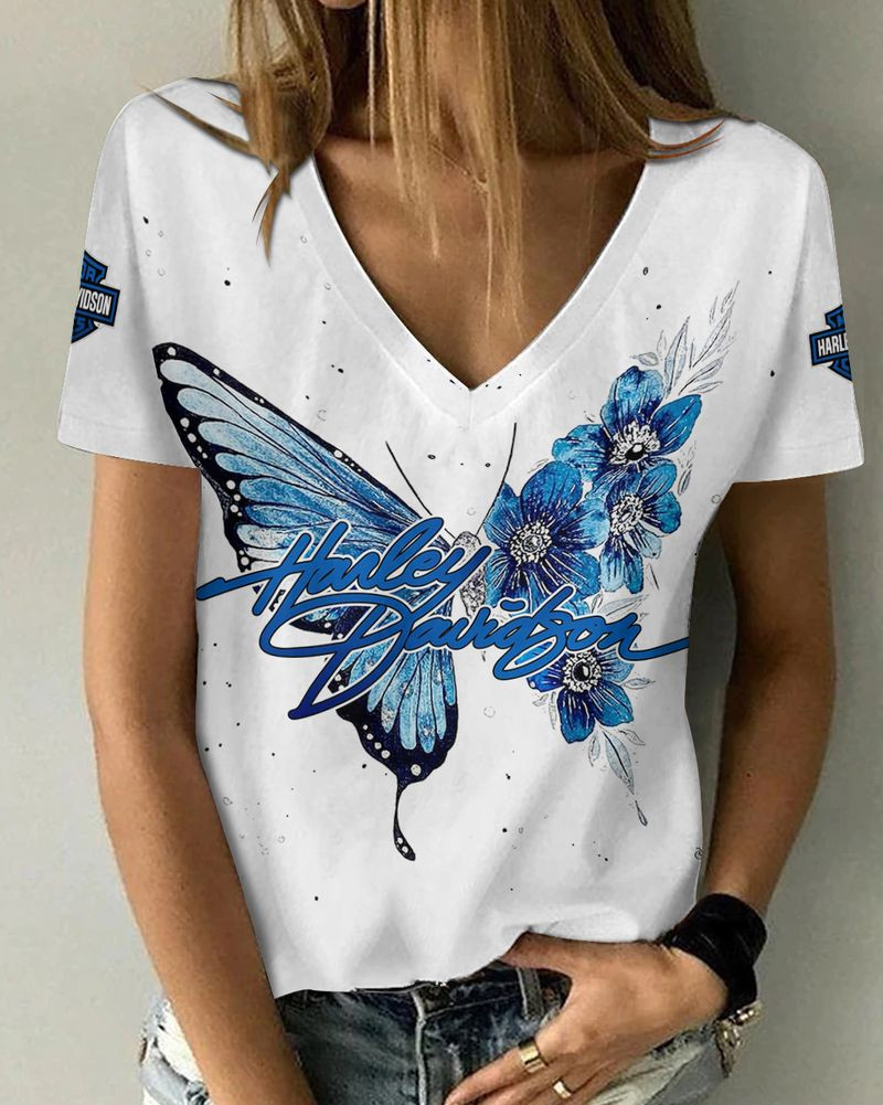 Harley Davidson Motorcycle Women V-neck T-shirt NABD16