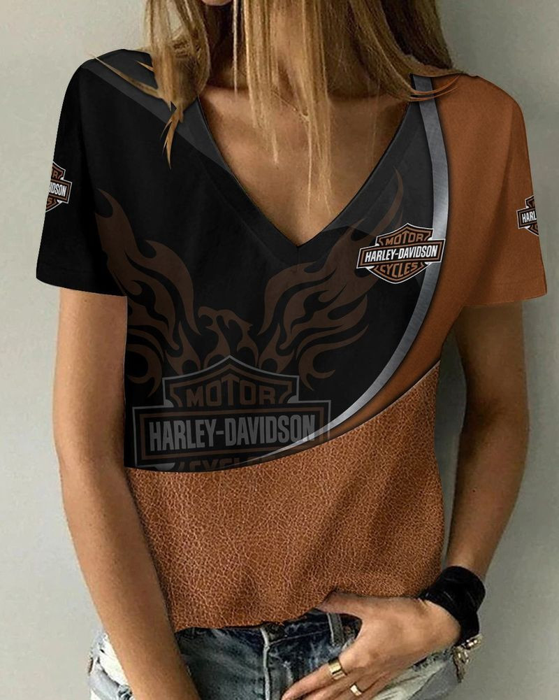 Harley Davidson Motorcycle Women V-neck T-shirt NABD45