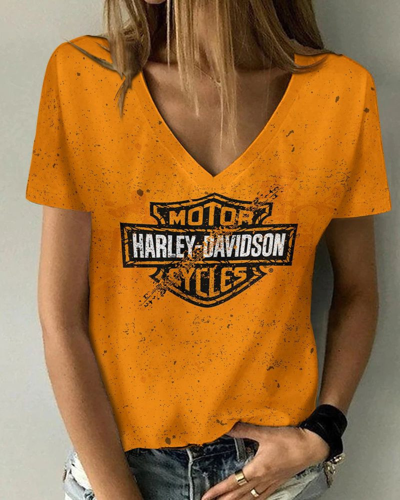 Harley Davidson Motorcycle Women V-neck T-shirt NABD56