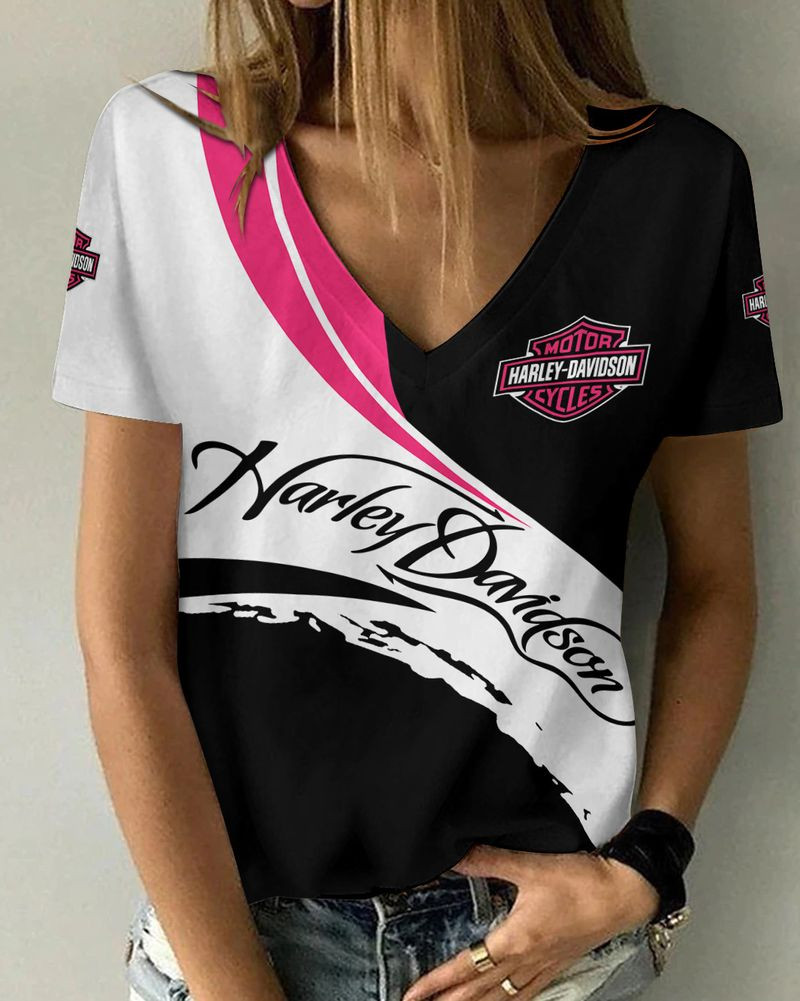 Harley Davidson Motorcycle Women V-neck T-shirt NABD73