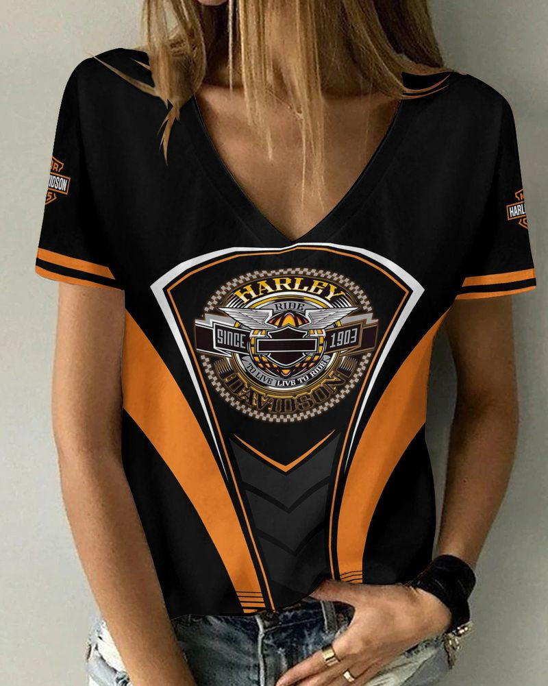 Harley Davidson Motorcycle Women V-neck T-shirt NABD92
