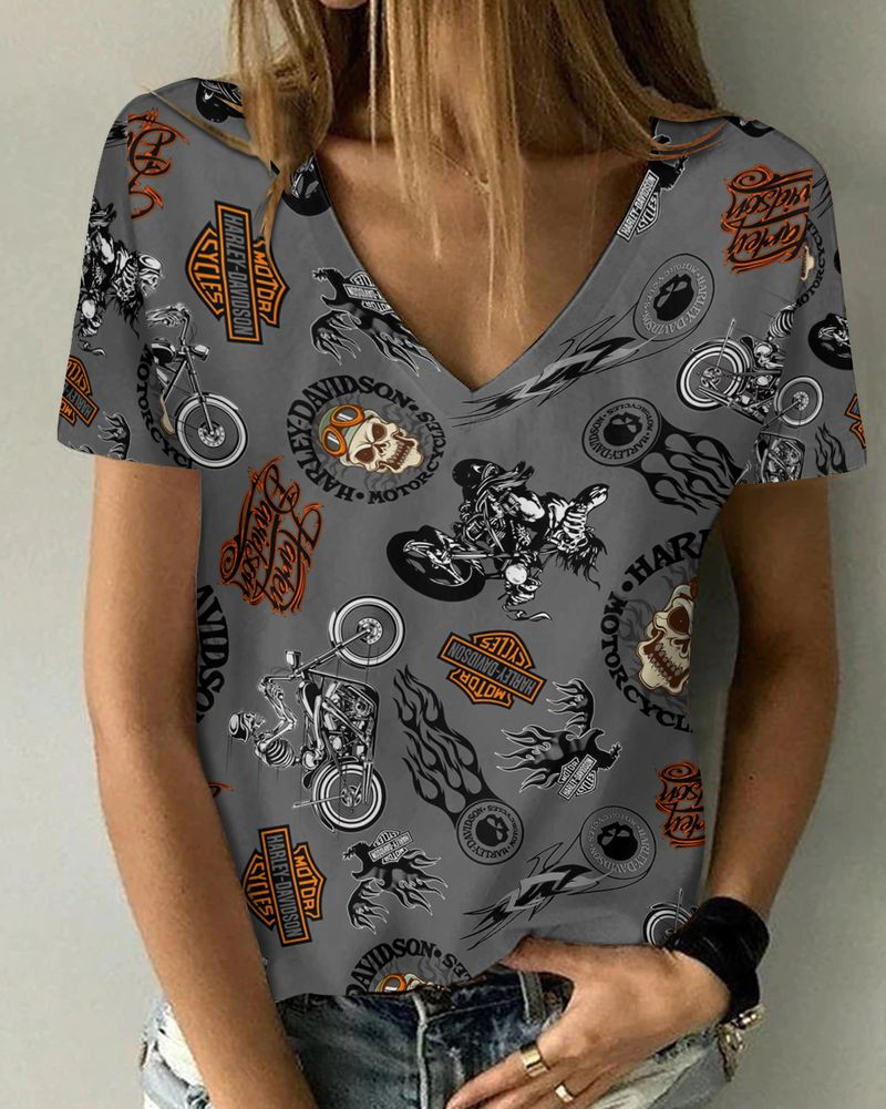 Harley Davidson Motorcycle Women V-neck T-shirt NABD94