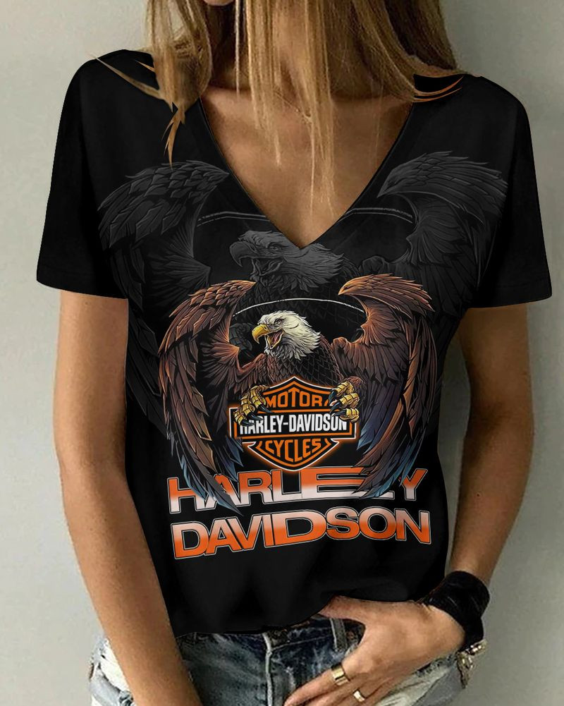 Harley Davidson Motorcycle Women V-neck T-shirt NABF26