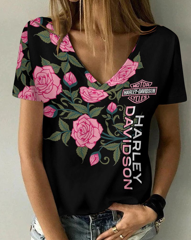 Harley Davidson Motorcycle Women V-neck T-shirt NABF27