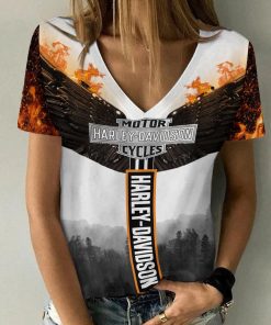 Harley Davidson Motorcycle Women V-neck T-shirt NABG26