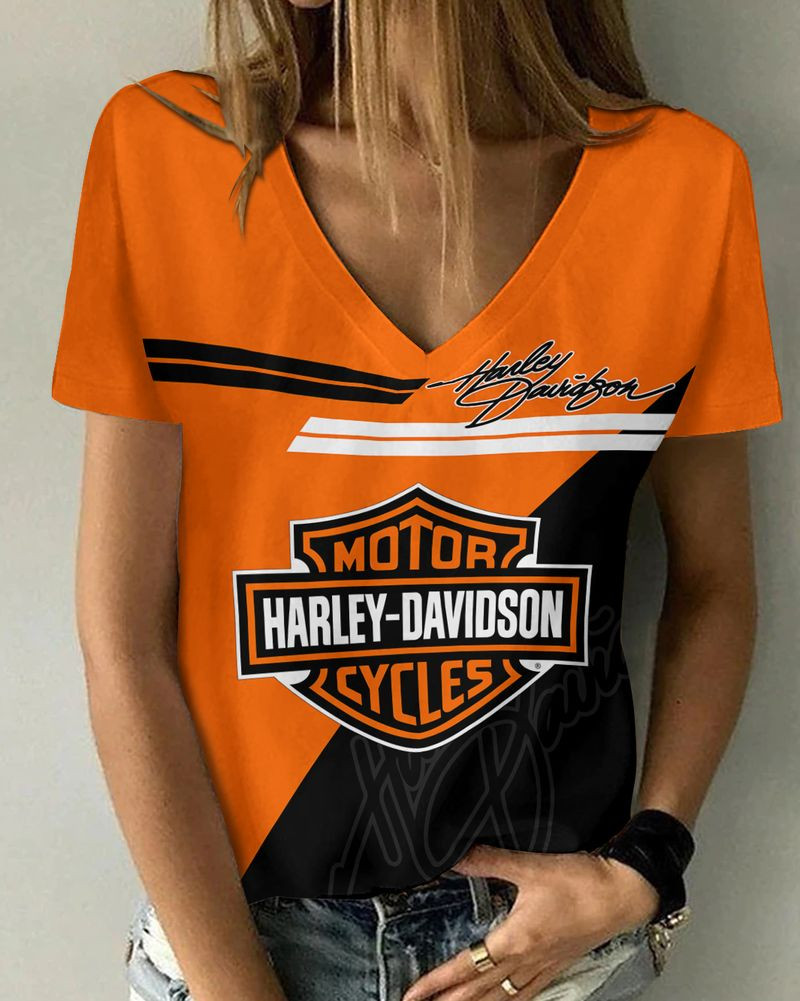 Harley Davidson Motorcycle Women V-neck T-shirt NABG27