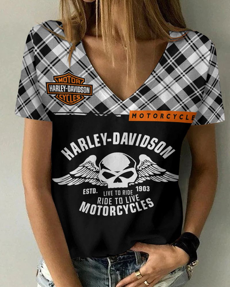 Harley Davidson Motorcycle Women V-neck T-shirt NABG30