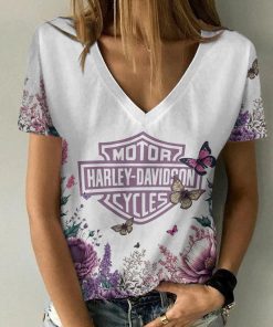 Harley Davidson Motorcycle Women V-neck T-shirt NABG312