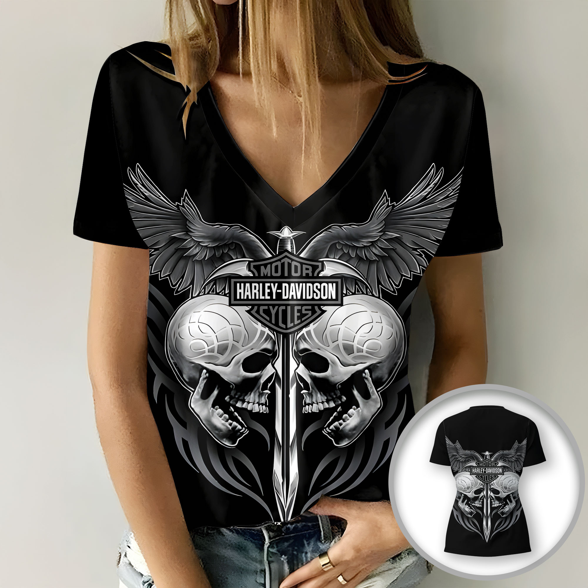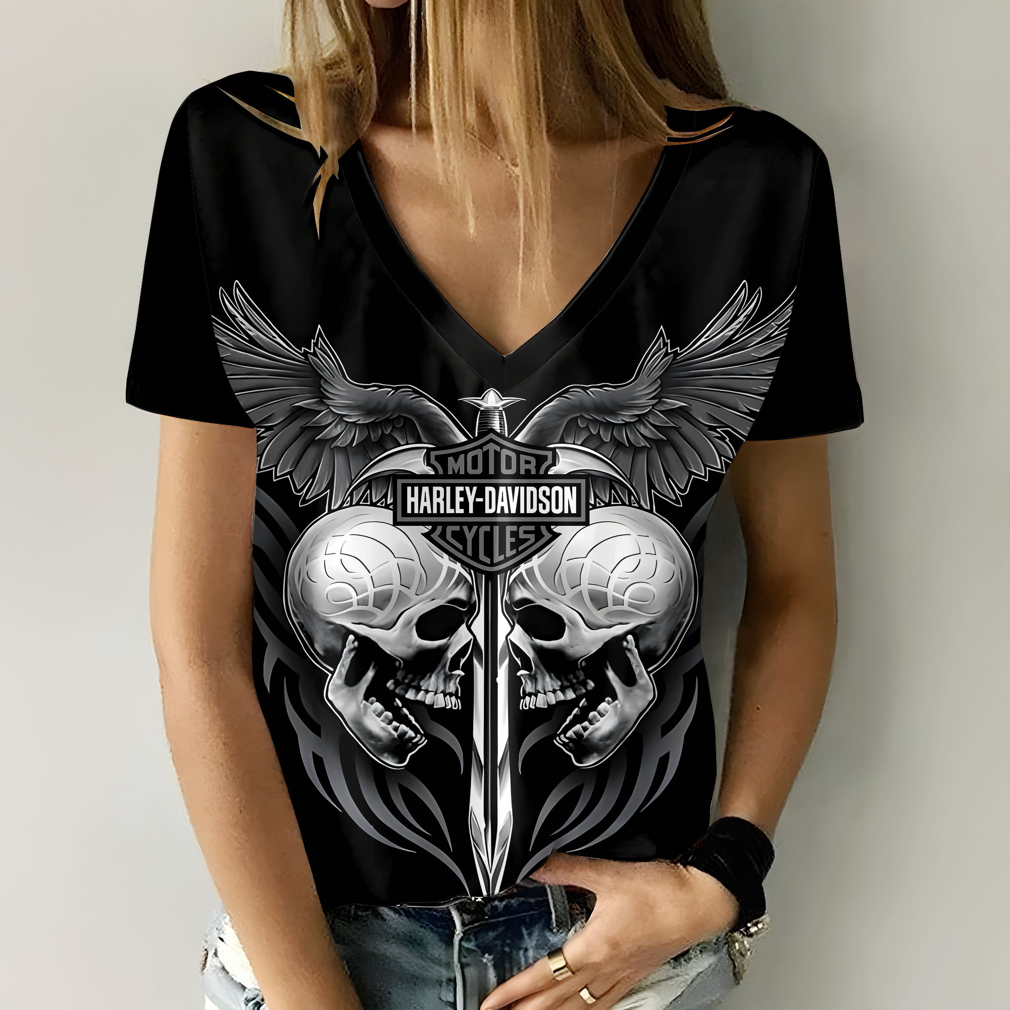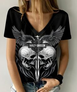 Harley Davidson Motorcycle Women V-neck T-shirt NABG318