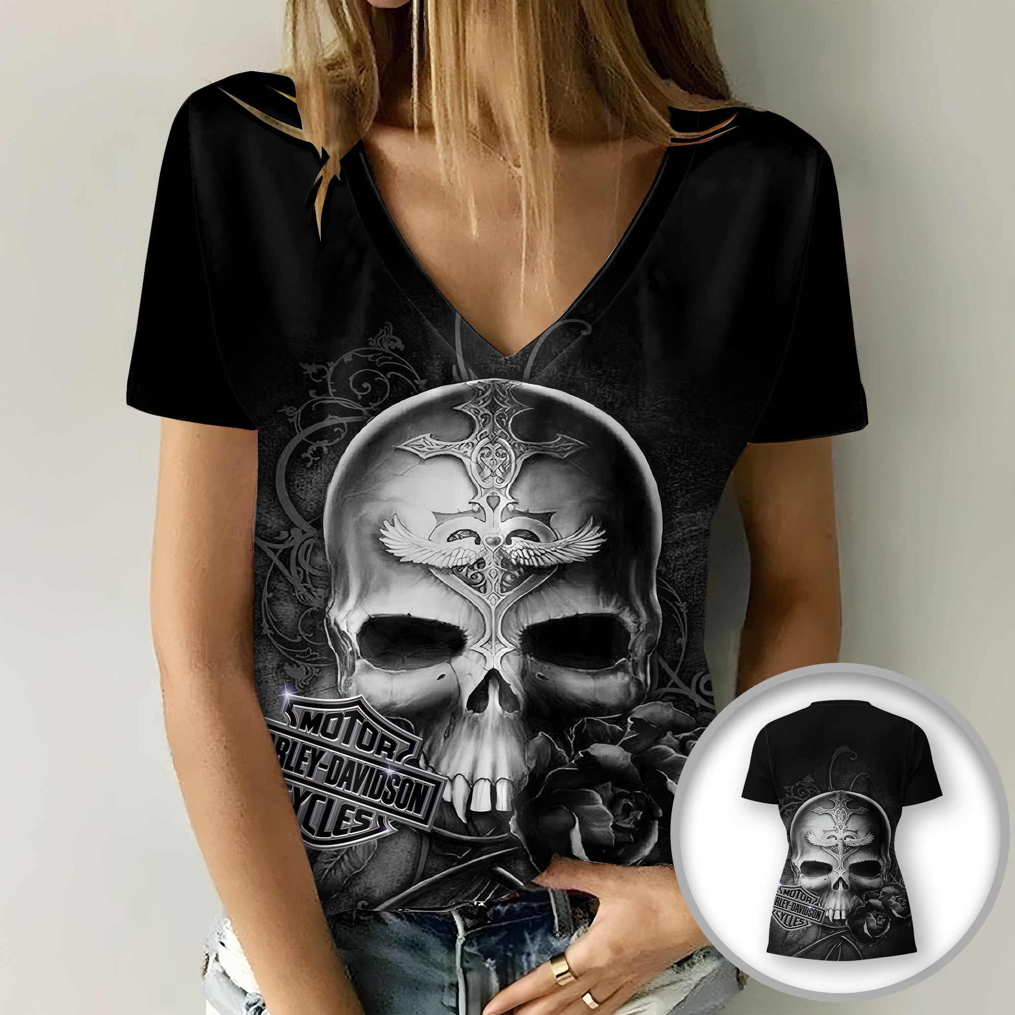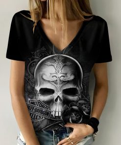 Harley Davidson Motorcycle Women V-neck T-shirt NABH02