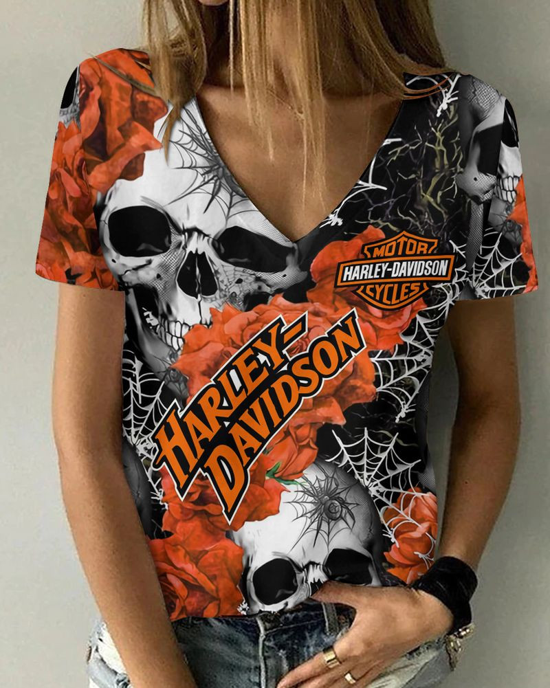 Harley Davidson Motorcycle Women V-neck T-shirt NABH10