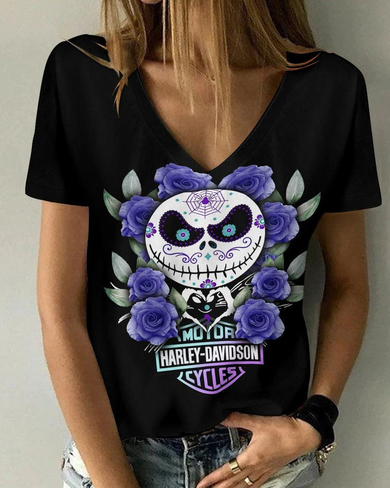 Harley Davidson Motorcycle Women V-neck T-shirt NABS90
