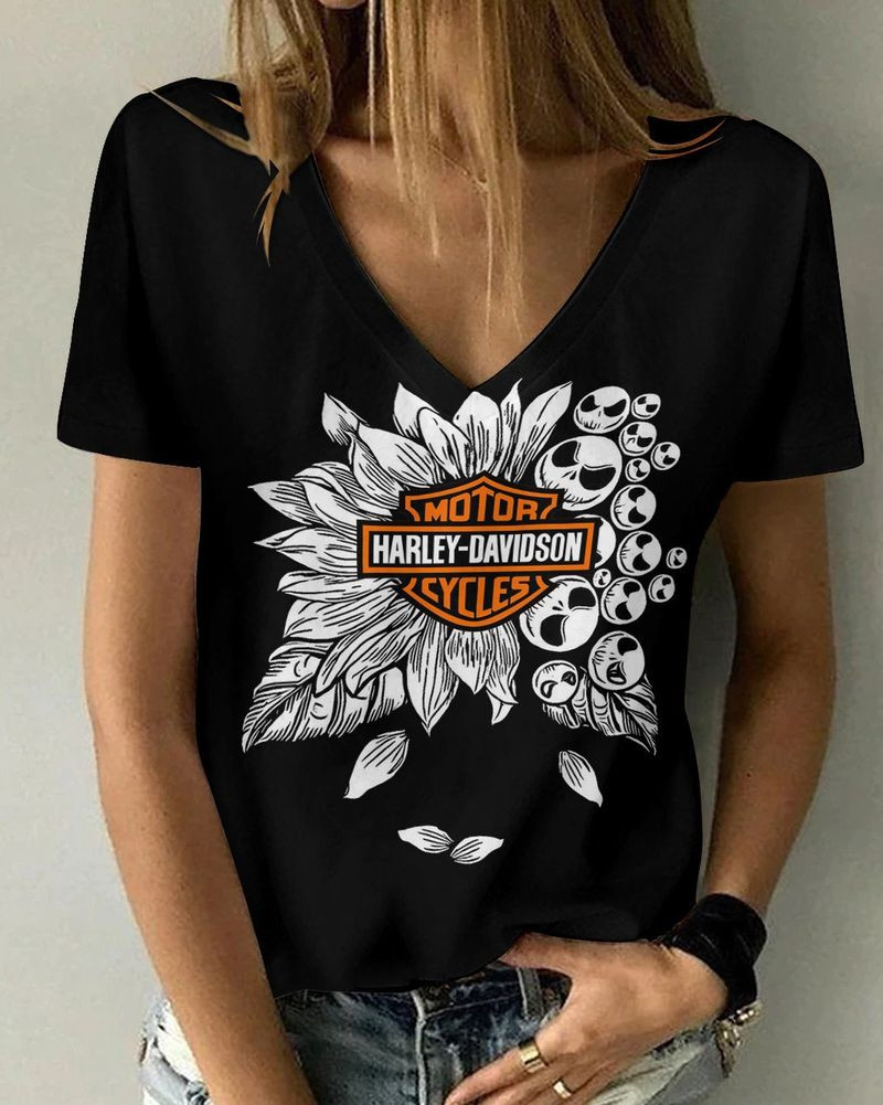 Harley Davidson Motorcycle Women V-neck T-shirt NABS94