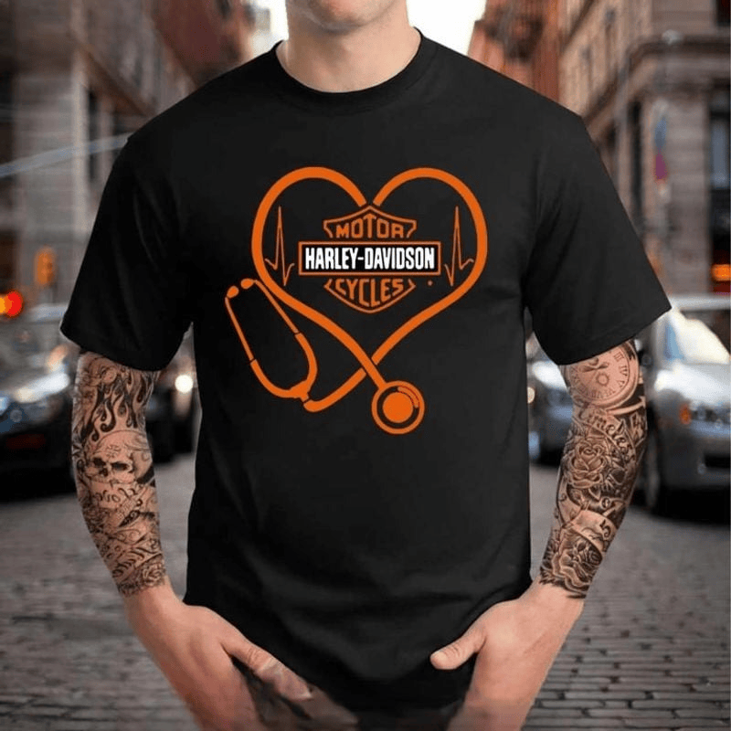 Harley Davidson Nurse Stethoscope Heart T-shirt, Crew-neck Sweatshirt, Hoodie, Tank Top, V-neck T-shirt Design 2D Full Printed Sizes S – 5XL – NABB95