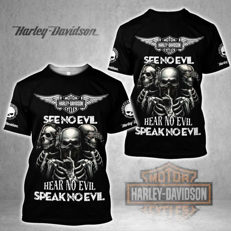 Harley Davidson See No Evil Hear No Evil T-Shirt Design 3D Full Printed Sizes S – 5XL – NAQA557A