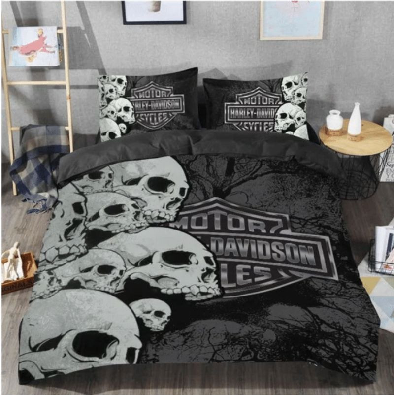 Harley Davidson Skull Bedding Set Cover Design 3D Perfect Gift- NAAF04
