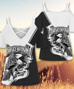 Harley Davidson Women’s Cold Shoulder T-shirt With Criss Cross Strips NAMA53