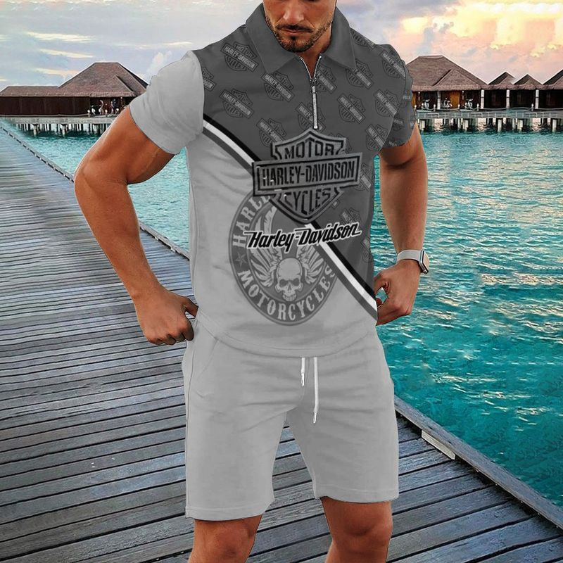 Harley Davidson Zipped Polo Shirt and Short Set NAJA317